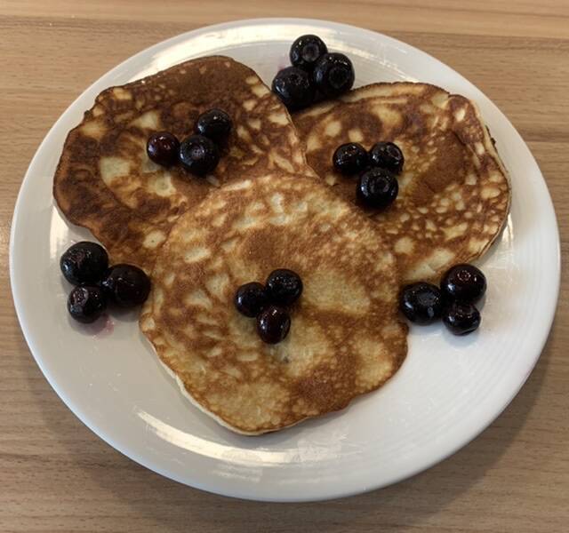 Vooral met blauwe bessen of ander fruit op de pannenkoekjes is het superlekker!!